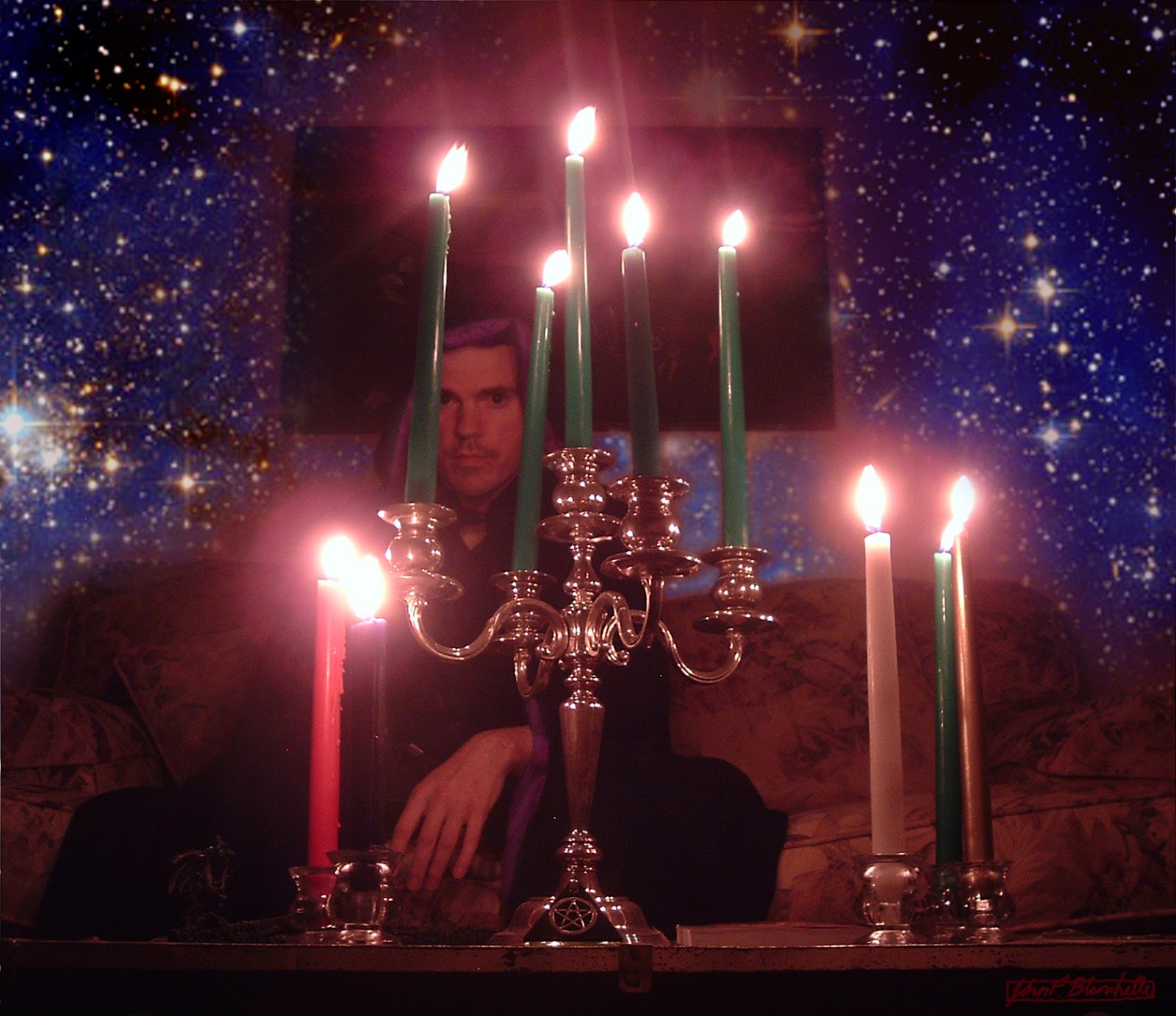 I had a vision suddenly of a cosmic being with bat like wings composed of fall leaves and nature in space near a giant pentacle made from a nebula.