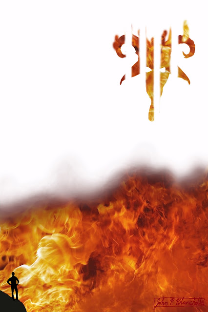 I saw a photo of my author friend Nikki Guerlain on Facebook and was really inspired by it. She was nice enough to allow me to work with the image. The two figures in black and white are coming out from the light tunnel from the past and into the future. The guy on the right is tracking her down. There's also a heavy Blade Runner influence with this one.