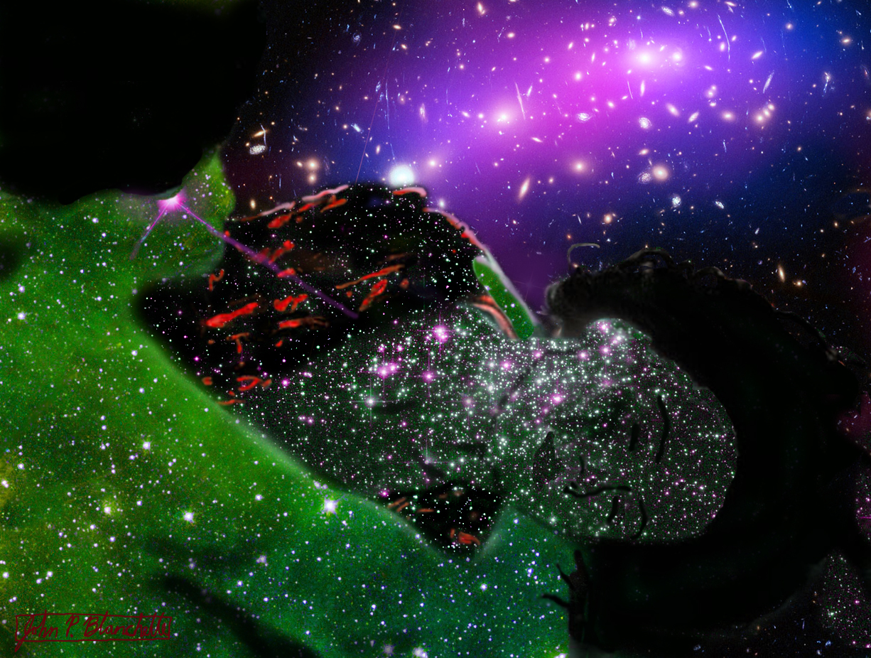 I was watching David Lynch's film Blue Velvet and had this vision. A man holding a woman made of stars. Then I went about making this